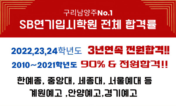 소수정예 SB연기학원은 모든 선생님이 최선을 다하고 있습니다 선생님들의 열정과 학생들의 열정으로 3년연속 전원합격과 수석합격!!!!!